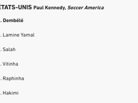 北京时间9月27日,金球奖主办方《法国足球》公布了2025年男足金球奖投票详情,美国记者Paul Kennedy投票顺序前五分别是登贝莱、亚马尔、萨拉赫、维蒂尼亚、拉菲尼亚。
