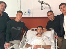 在巴萨门将霍安-加西亚完成膝盖手术后,队友奥尔莫去探望了他。