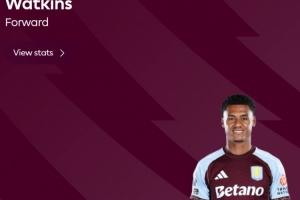 本场比赛沃特金斯在上半场为球队先拔头筹扳平比分,赛后他也当选英超官方球迷票选全场最佳球员。