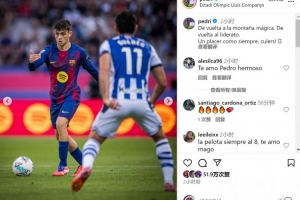 佩德里当选本场比赛最佳球员,赛后他在社交媒体上晒出比赛照片,配文:“重回蒙特惠奇球场,重返西甲榜首。一如既往的快乐,巴萨球迷们。”