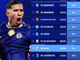 赛后来自德转的统计指出,切尔西本场比赛首发阵容的平均年龄为21.6岁,为近15个赛季欧冠单场比赛的第8年轻首发阵容,而5-1战胜阿贾克斯则是蓝军队史在欧冠比赛的第7大比分胜利。