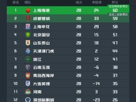 第28轮中,新鹏城力克三镇,梅州1-4不敌云南,亚泰在2-0领先的情况下遗憾被津门虎追平,而青岛海牛客场上演大逆转,4-2战胜北京国安。